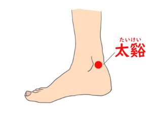 内くるぶしとアキレス腱の間にある、冷えにとても強いツボです。